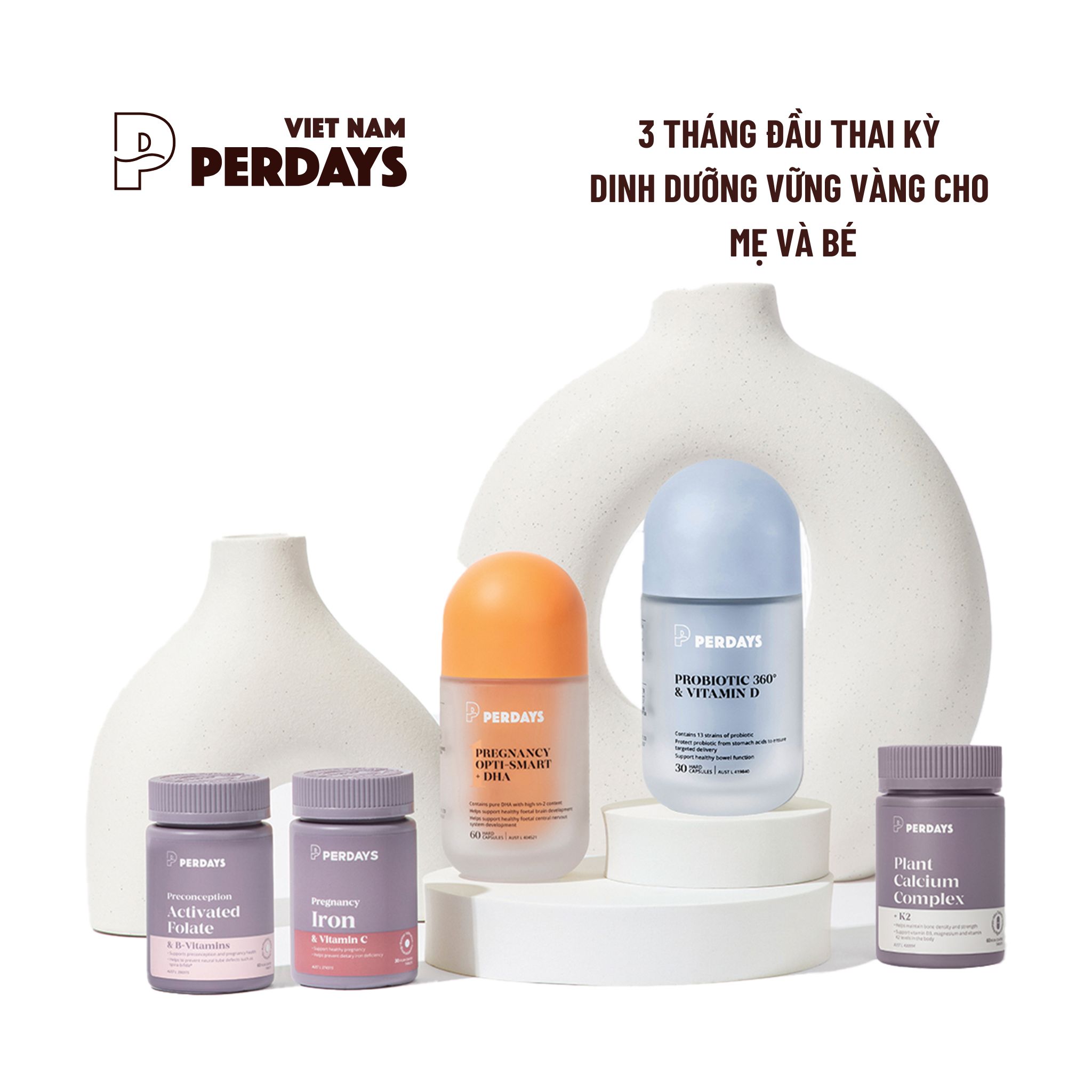 Giai đoạn đầu thai kỳ là thời điểm vàng, nơi hệ thần kinh và các cơ quan cơ bản của thai nhi bắt đầu hình thành. Combo PERDAYS cung cấp dinh dưỡng chuẩn xác, toàn diện, giúp mẹ vượt qua những thử thách đầu thai kỳ và tạo nền tảng phát triển vững chắc nhất cho bé.