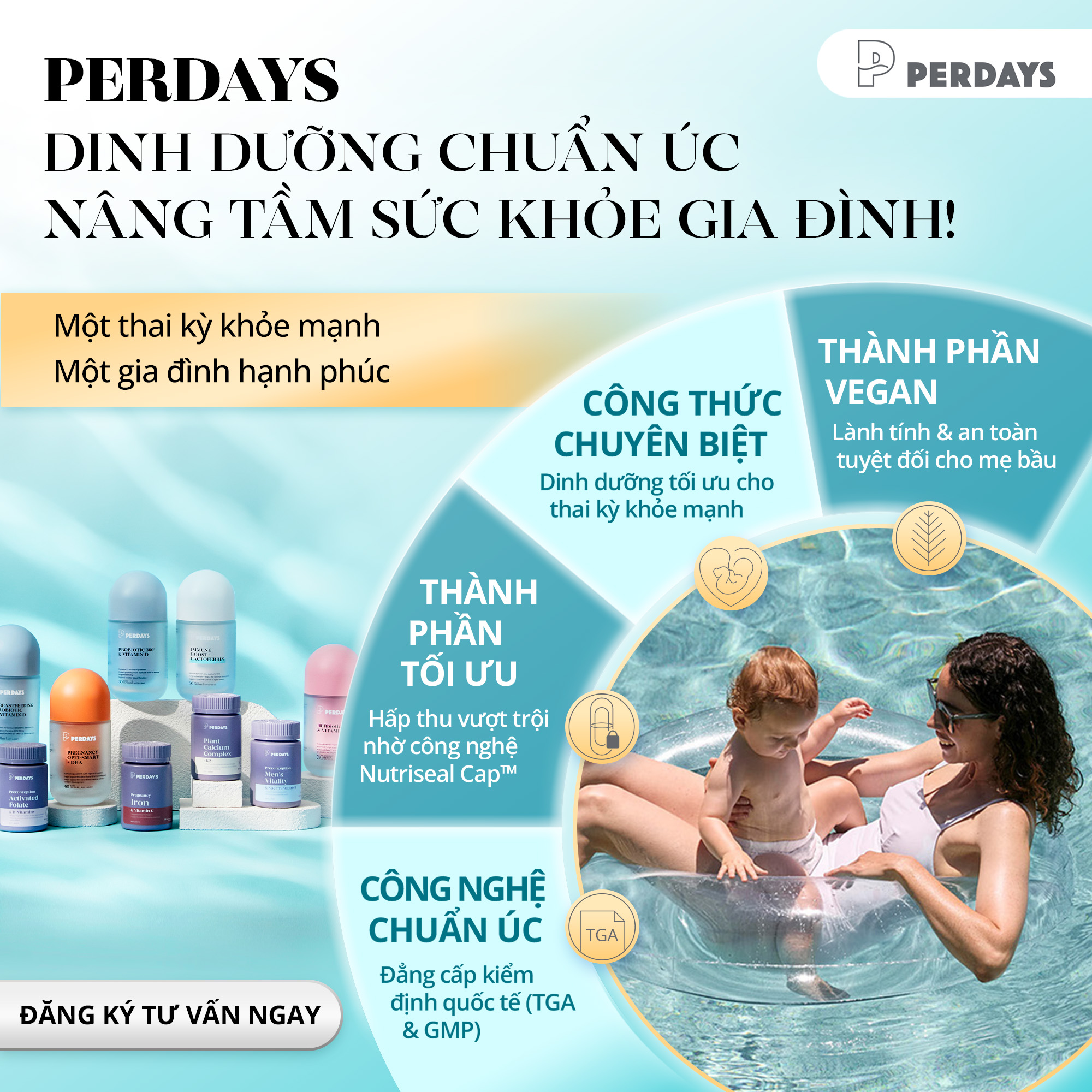 Việc bổ sung vi chất trong thai kỳ là rất cần thiết để đảm bảo sức khỏe cho mẹ và sự phát triển toàn diện của bé. Với ưu điểm về thành phần tự nhiên, độ tinh khiết cao, dễ hấp thu và được sản xuất tại Úc theo tiêu chuẩn quốc tế, có thể khẳng định rằng Perdays bầu Úc là lựa chọn đáng tin cậy cho mẹ bầu hiện đại.