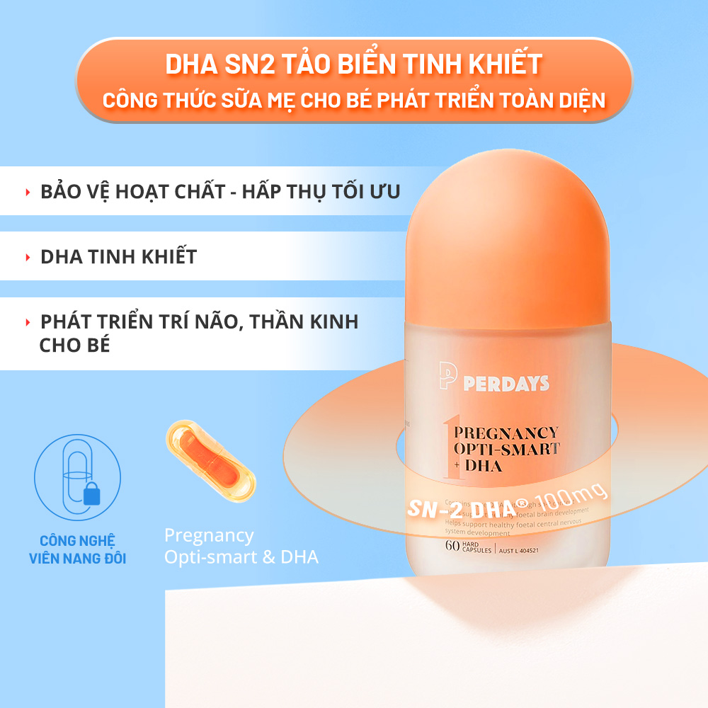 Giai đoạn đầu thai kỳ là thời điểm vàng, nơi hệ thần kinh và các cơ quan cơ bản của thai nhi bắt đầu hình thành. Combo PERDAYS cung cấp dinh dưỡng chuẩn xác, toàn diện, giúp mẹ vượt qua những thử thách đầu thai kỳ và tạo nền tảng phát triển vững chắc nhất cho bé.